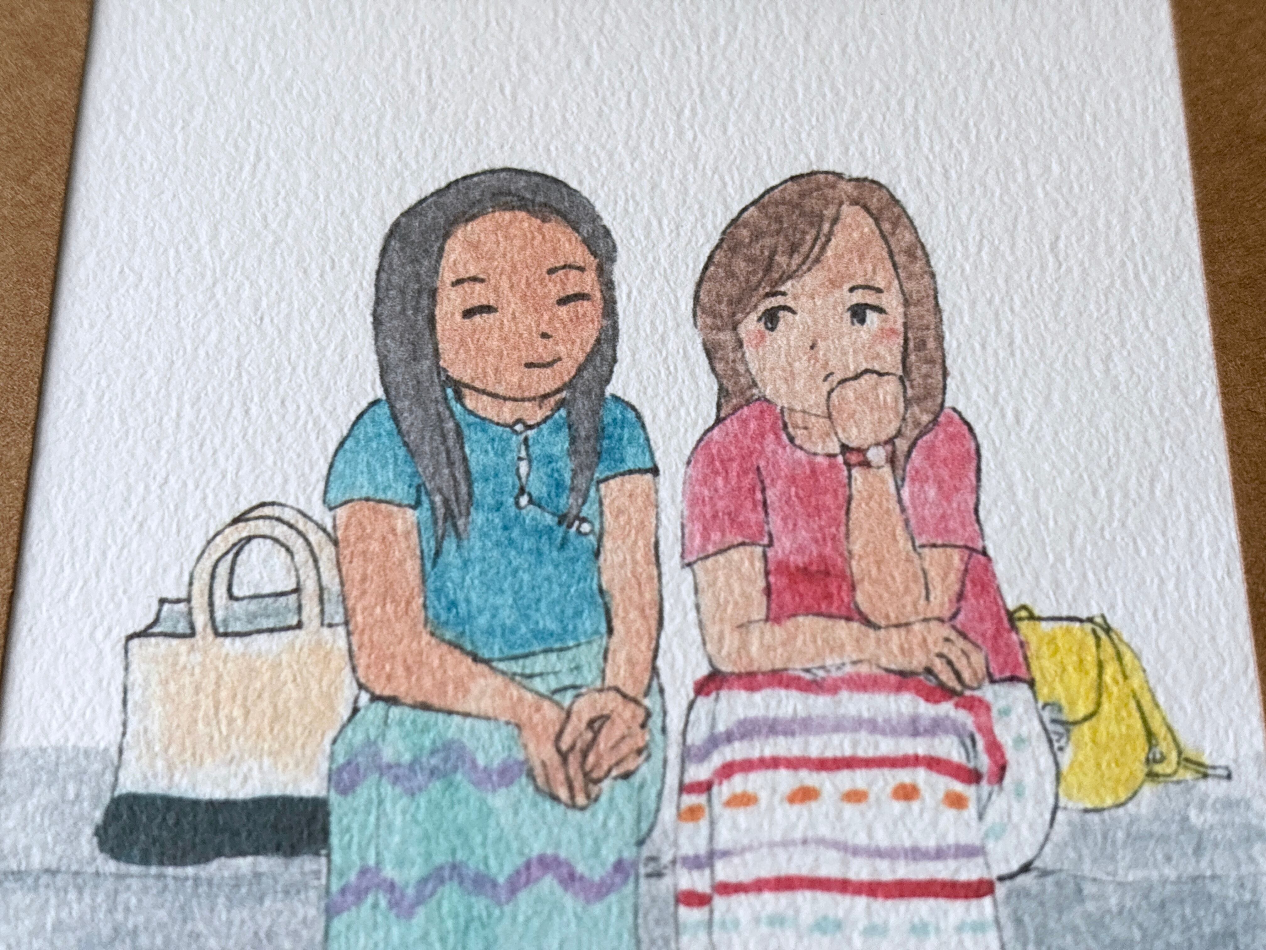ikumiさんは、ミャンマーののんびりとした日常や、賑やかな市場の風景、子どもたちの遊びなど、現地での生活を温かく描き続けています。その作品は、ひとつひとつが心に柔らかな余韻を残してくれます。
