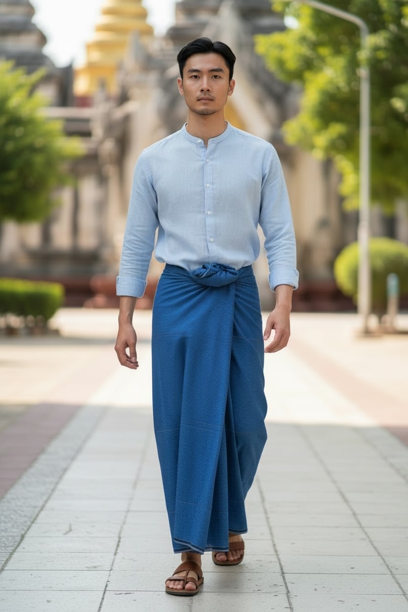男性用のミャンマー伝統衣装、ロンジー(バソー)のご紹介です。